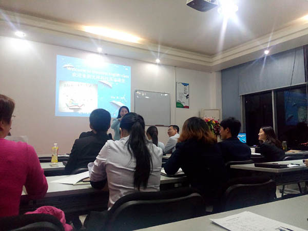 英語培訓班成立啦,于12月9號正式開課,由國際銷售部的黃二湘和鐘亮兩位同事?lián)闻嘤柪蠋?,上課時間為每周二和周四晚上18:30——20:30,截止目前為止已經(jīng)有56人積極報名參加了。