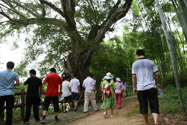 寧可食無肉,不可居無竹,蘇家圍沿河兩岸的自生竹,濃翠若滴,使我不由自主地又想起了這兩句話。我們邊走邊聊,如此美麗的風(fēng)景讓我們有種人在畫中游的感覺;在竹林內(nèi),我們仿佛穿越了時空與往圣先賢同處一地,進行心靈的對話。從竹林里走出來我們的心靈受到了洗禮,仿佛凈化了許多!