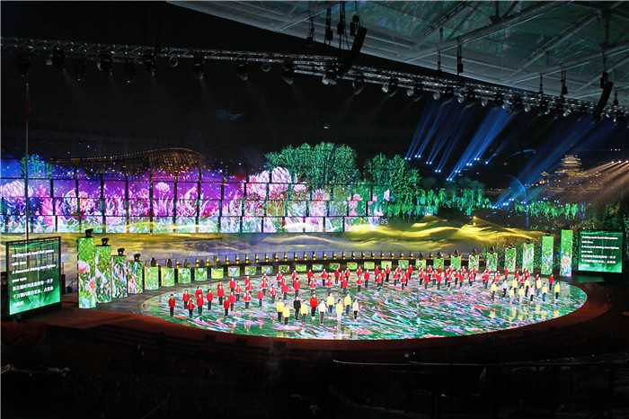整個(gè)演出中異形屏多重造型的呈現(xiàn)結(jié)合無以倫比的舞臺特效,將演出參與者的激情與美好愿望都展現(xiàn)得淋漓盡致,并通過室外借景構(gòu)景,讓演出和湖光山色相得益彰,同時(shí)注重國際化表達(dá)和對“人類命運(yùn)共同體”的詮釋。讓園藝融入自然,讓自然感動(dòng)心靈,惟心惟精于世園會主舞臺每一個(gè)顯示像素的背后,沉積的是嘉明偉視與光祥科技團(tuán)隊(duì)的不斷探索與創(chuàng)新。