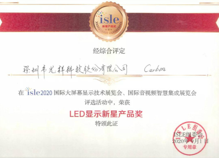作為專業(yè)參展商,光祥ISLE展位亮點十足,新品好評如潮。光祥Carbon系列在一眾租賃展品中,表現(xiàn)出圈,得到展會專家評審團的一致認可,幸運斬獲2020 ISLE“LED顯示新星產(chǎn)品獎”殊榮。