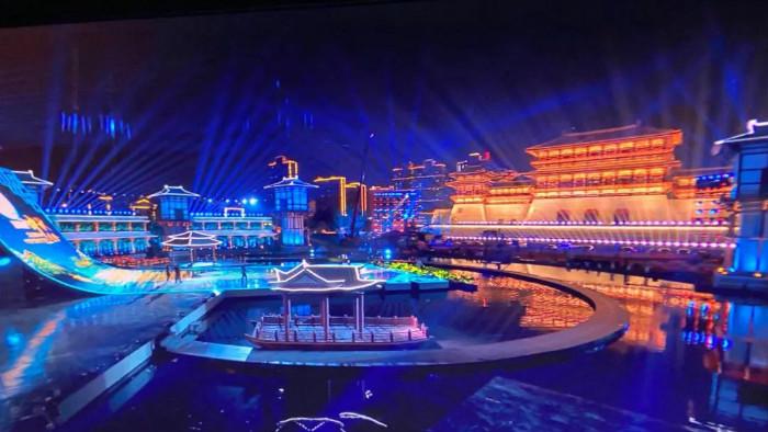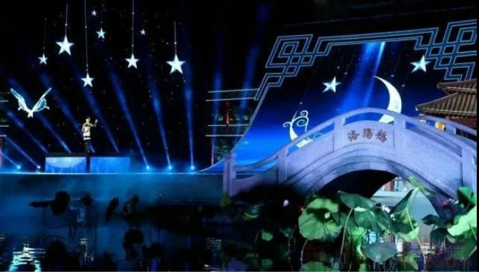 當晚,富麗典雅的戶外演出場地,與應天門的朱樓碧瓦相得益彰,隱約重現(xiàn)隋唐古都的雍容華貴。1000㎡光祥LED顯示屏,光芒四射、炫彩奪目,宛如輝映中原的千古繁華,映照華夏文明的風雨變遷。