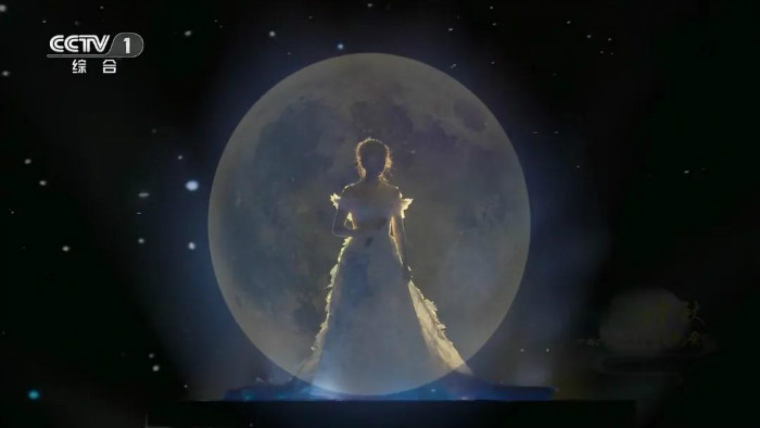 萬里無云鏡九州,最團圓夜是中秋。歌聲起,明月升。舞臺中央,一輪皓月高懸,月色皎潔,桂影浮現(xiàn),依稀天上人間,令人不禁神往。