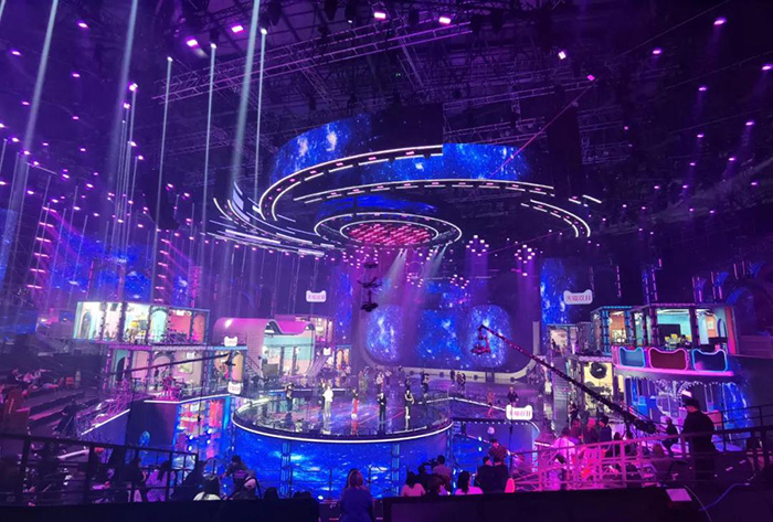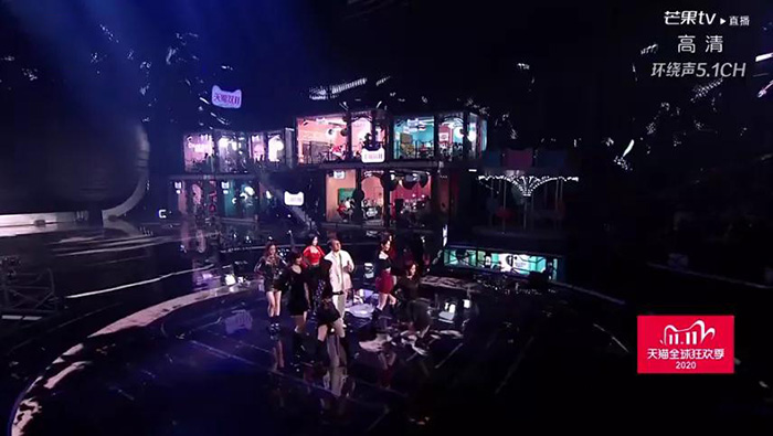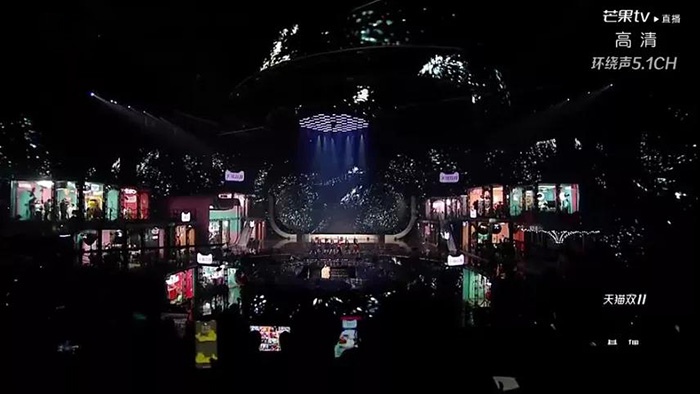 湖南衛(wèi)視搬出最強舞臺陣容,天貓搬出最火直播間,光祥搬出頂尖的科技,17個直播間被搬上舞臺。17個直播間,17塊小型LED顯示屏,連接舞臺主屏。藝人自由穿梭于各大直播間,與主播的互動,全部實時呈現(xiàn)觀眾眼前。