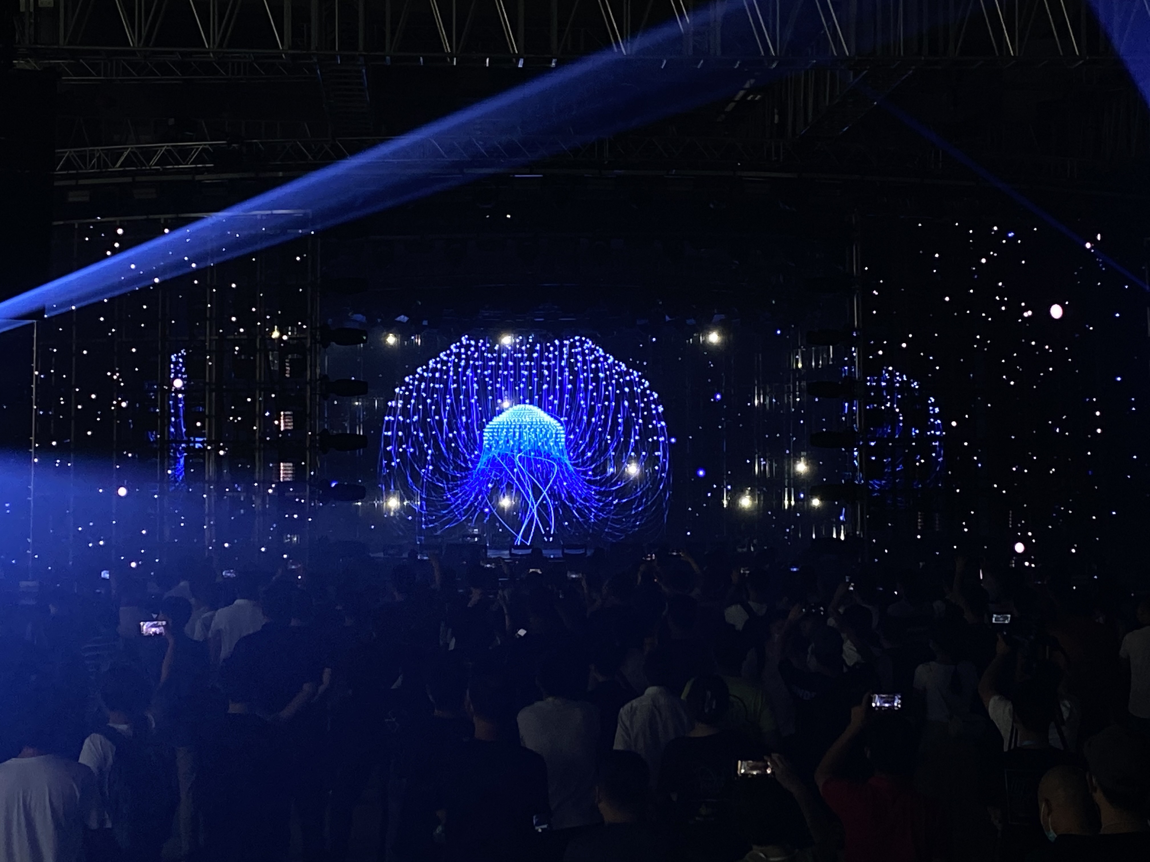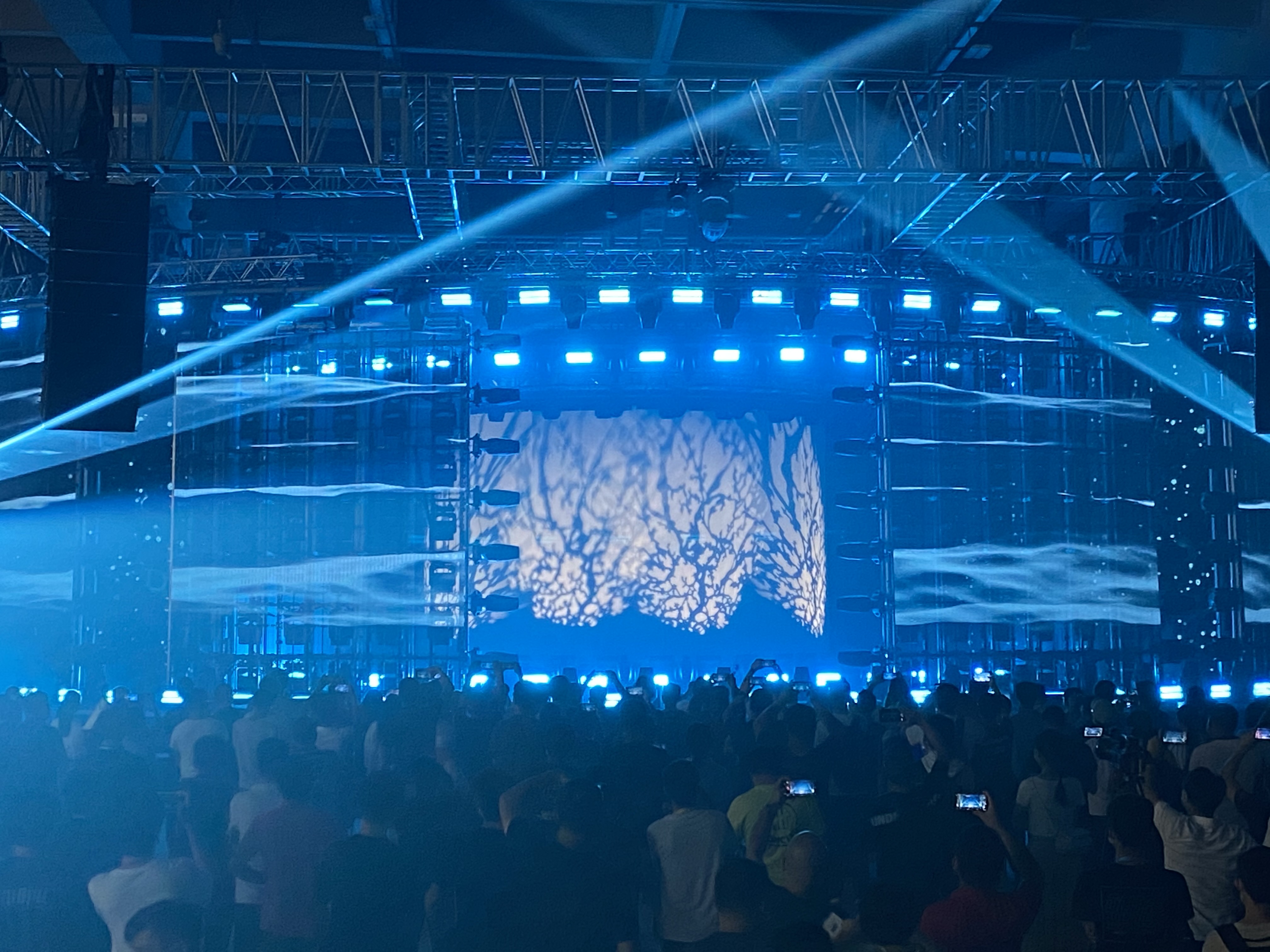 活動(dòng)圍繞“科技賦能文娛”主題展開,重點(diǎn)打造全新“沉浸式體驗(yàn)區(qū)”。設(shè)計(jì)團(tuán)隊(duì)Even Space 嘗試抓住 “ 水 ” 在四季中的不一樣的形態(tài)和變幻,表現(xiàn)四季循環(huán)。以水為主線,春夏秋冬為時(shí)間線,表現(xiàn)“水”在四季中的不同形態(tài)和變幻,領(lǐng)略生命的真實(shí)存在感。異形屏多重造型的呈現(xiàn)結(jié)合無以倫比的舞臺(tái)特效,尤其可滑動(dòng)VA透明屏,燈光穿過屏幕,通透清澈,再依托于威亞吊裝系統(tǒng),結(jié)合編程組合、穿插調(diào)度,使舞臺(tái)層次變換更加豐富立體,點(diǎn)燃現(xiàn)場(chǎng)。