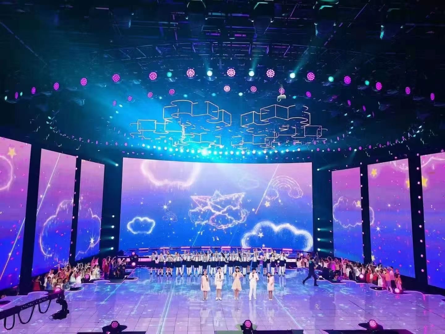 伴隨著一聲歡快的“我們來(lái)了”,少先隊(duì)員們涌入劇場(chǎng),他們既是今天舞臺(tái)上的主角,也是現(xiàn)場(chǎng)的文化志愿者,此次演出舞臺(tái)大屏由VA透明屏系列組成,配合“你好!紅領(lǐng)巾”“你好!新時(shí)代”“你好!百年風(fēng)華”三個(gè)主題,帶領(lǐng)孩子們縱 穿古今,展望未來(lái),展現(xiàn)青少年追求夢(mèng)想、努力奮斗的精神面貌。