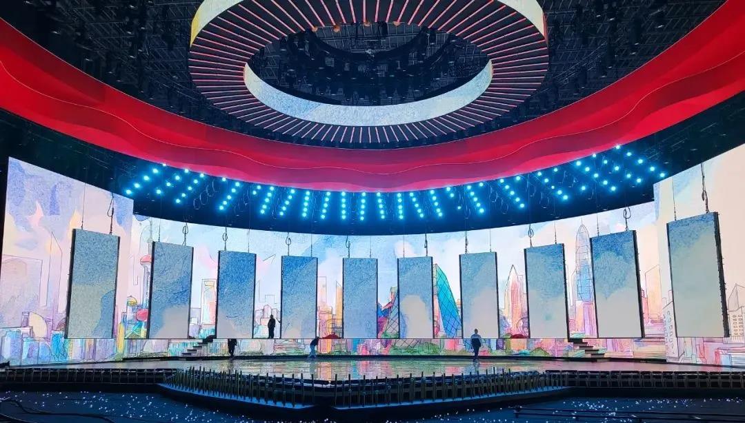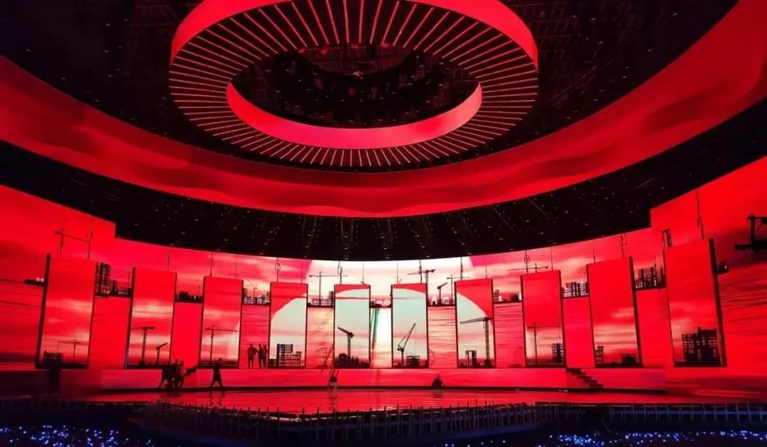 光祥 P 3.47屏幕作為晚會主屏,以超清的畫面、穩(wěn)定的顯示和鮮明的色彩,為全國觀眾奉獻一場“百年征程風正勁,接力奮斗再出發(fā)”的畫卷。高科技視聽技術的融入充分迸發(fā)出舞臺的表現(xiàn)力,實景拍攝與虛擬視聽技術相融合,打造出身臨其境的舞臺效果。一場跨越時空的旅程擊碎時空屏障,穿越風雨征途,見證百年芳華。