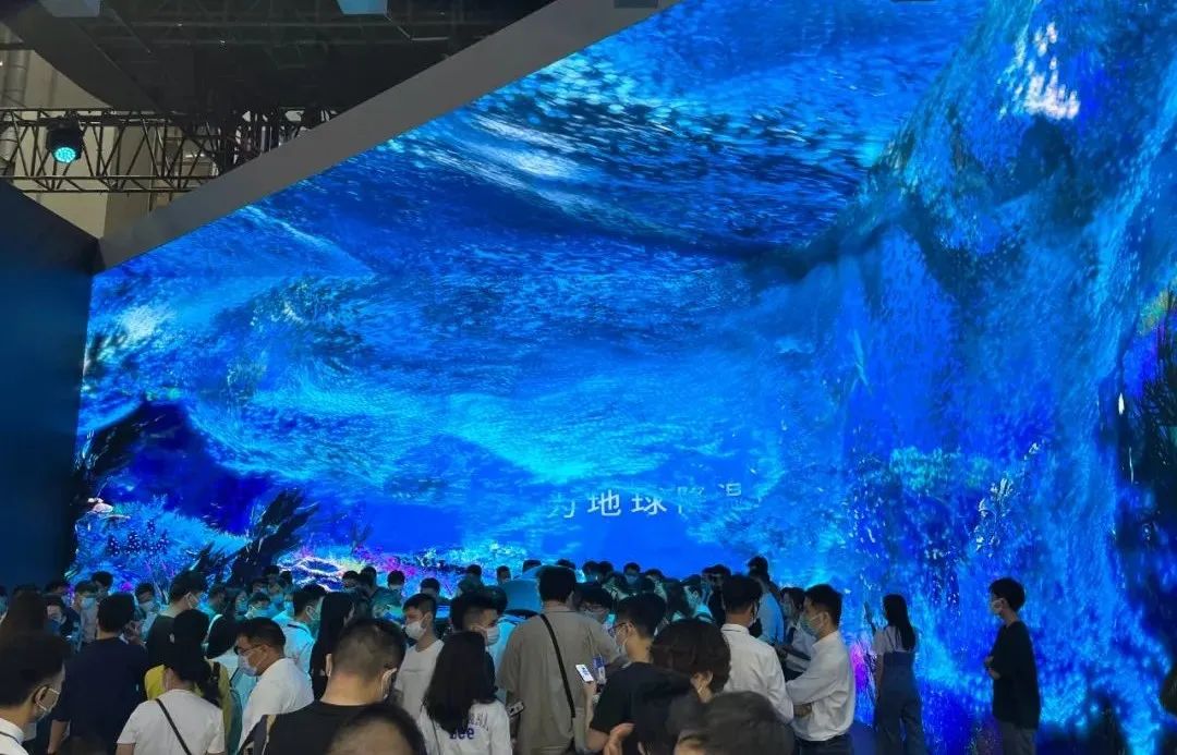 展會現(xiàn)場五光十色、異?;馃幔驹诒葋喌险古_上,宛如置身于海底世界,魚群從身邊游過,海草隨浪起舞,艷麗的珊瑚點綴其中,紋路細膩可見,仿佛觸手可及,陣陣清涼縈繞身旁。