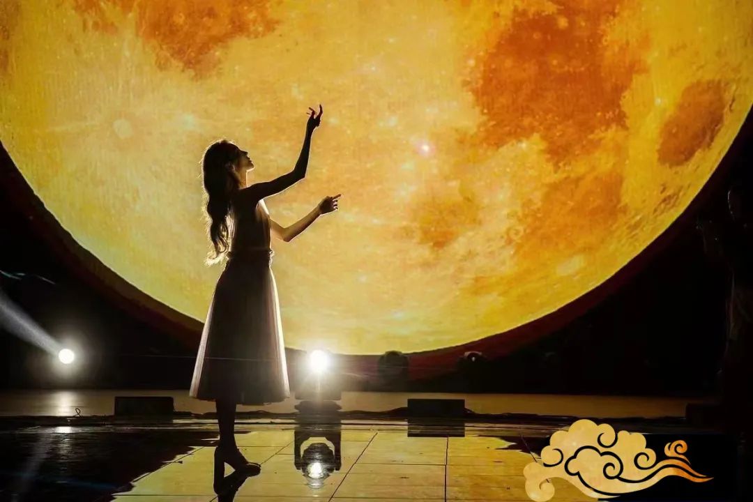 正是花好月圓時刻,360度圓形舞臺,將外景拍攝、虛擬XR技術(shù)與實景山水巧妙融合,充滿浪漫氣息。