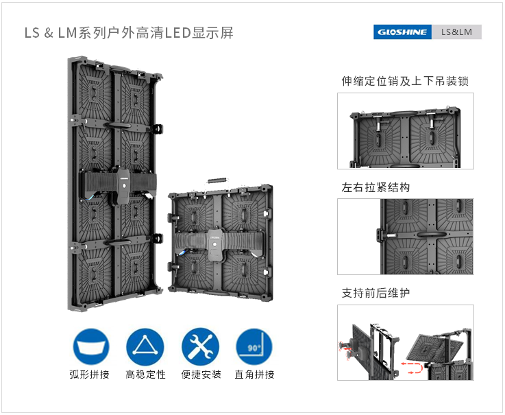光祥LS&LM系列戶外高清屏色彩還原逼真、對比度、亮度佳,并有著優(yōu)異的低灰顯示效果,光線柔和,性能穩(wěn)定,是戶外舞臺常用的高清LED顯示屏。