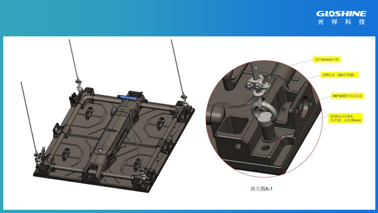 箱體四角配置活動(dòng)連接鉸鏈,連接數(shù)控升降線纜,可進(jìn)行升降、俯仰、傾斜動(dòng)作,應(yīng)場(chǎng)景需要塑造不同造型。
