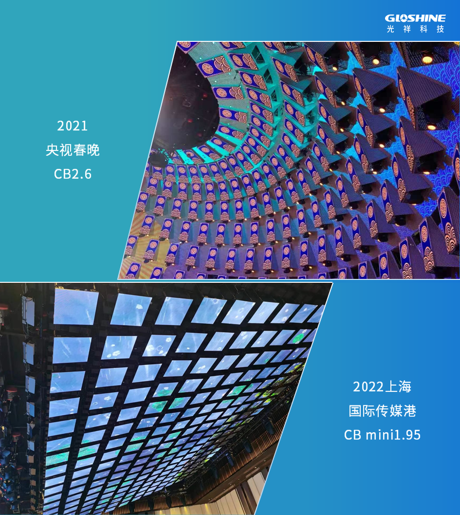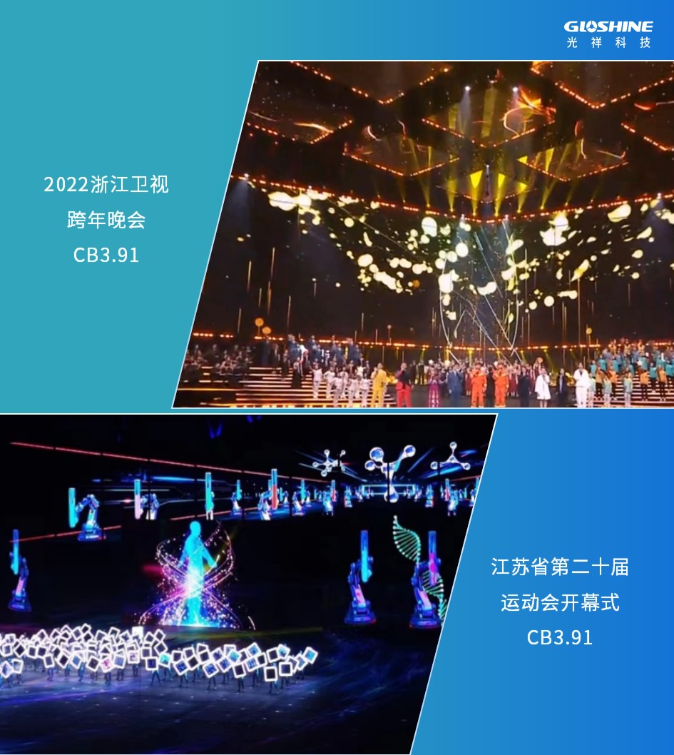 光祥CB系列高清屏以輕薄著稱,常應(yīng)用于舞臺(tái)空中造型,如2021年央視春晚舞臺(tái)及2022浙江衛(wèi)視跨年晚會(huì)、江蘇省第20屆運(yùn)動(dòng)會(huì)等。