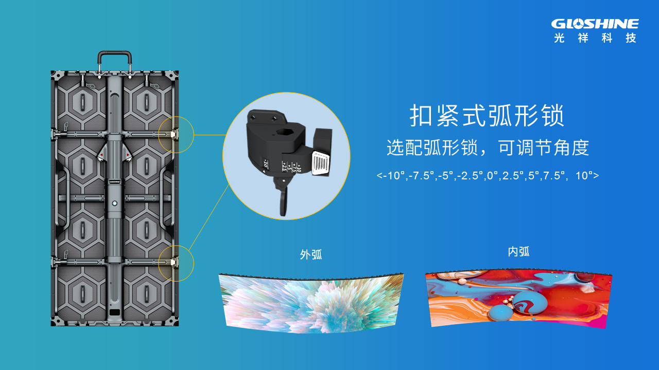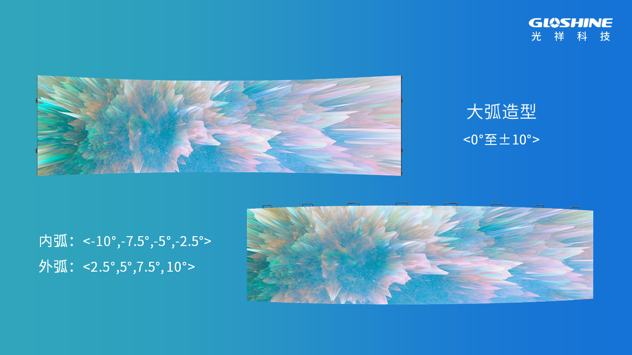 BE&BM系列高清屏斜角箱體可塑造0°至±10°大弧造型,內(nèi)弧外弧或同時(shí)塑造或分開塑造。