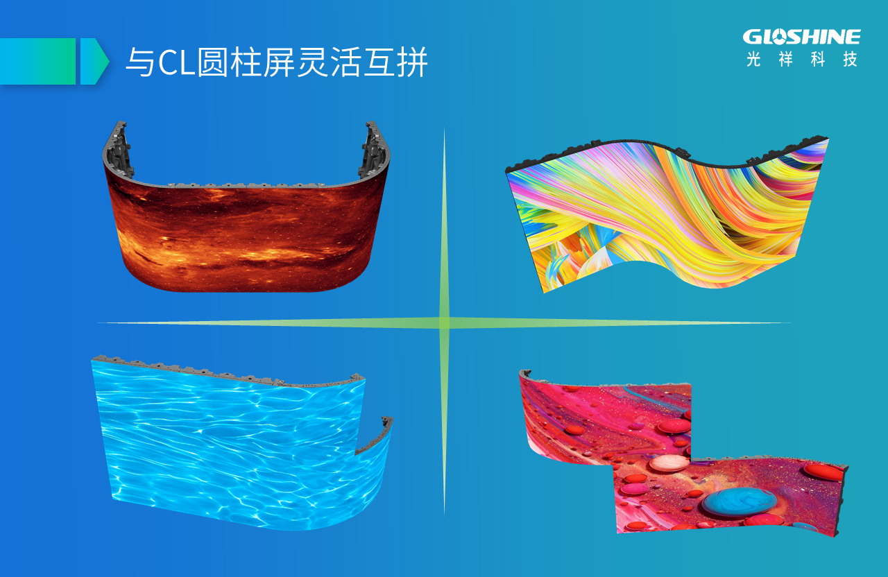 BE&BM系列戶內(nèi)戶外屏可分別與CL系列戶內(nèi)戶外圓柱屏互相拼接,塑造S波浪造型、U形造型等,創(chuàng)意無限。