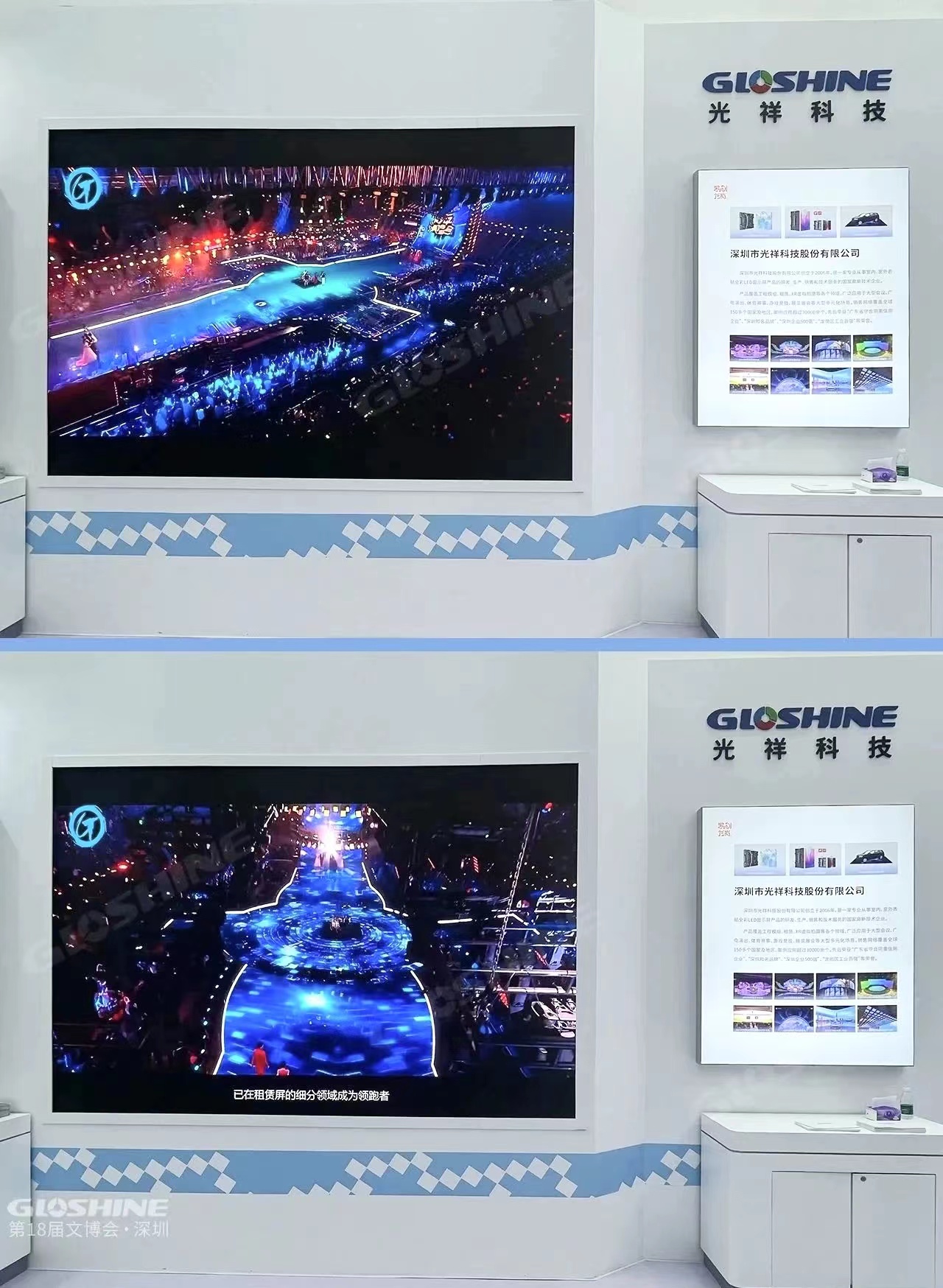 12月28日下午,第十八屆中國(深圳)國際文化產(chǎn)業(yè)博覽交易會(簡稱“文博會”)在深圳國際會展中心拉開帷幕。光祥科技作為深圳市龍崗區(qū)文化產(chǎn)業(yè)發(fā)展和合作成果展示企業(yè)——數(shù)創(chuàng)智造企業(yè)之一參展,而在展會現(xiàn)場更有數(shù)不清的光祥大屏為各個參展單位、展商提供視效呈現(xiàn)。