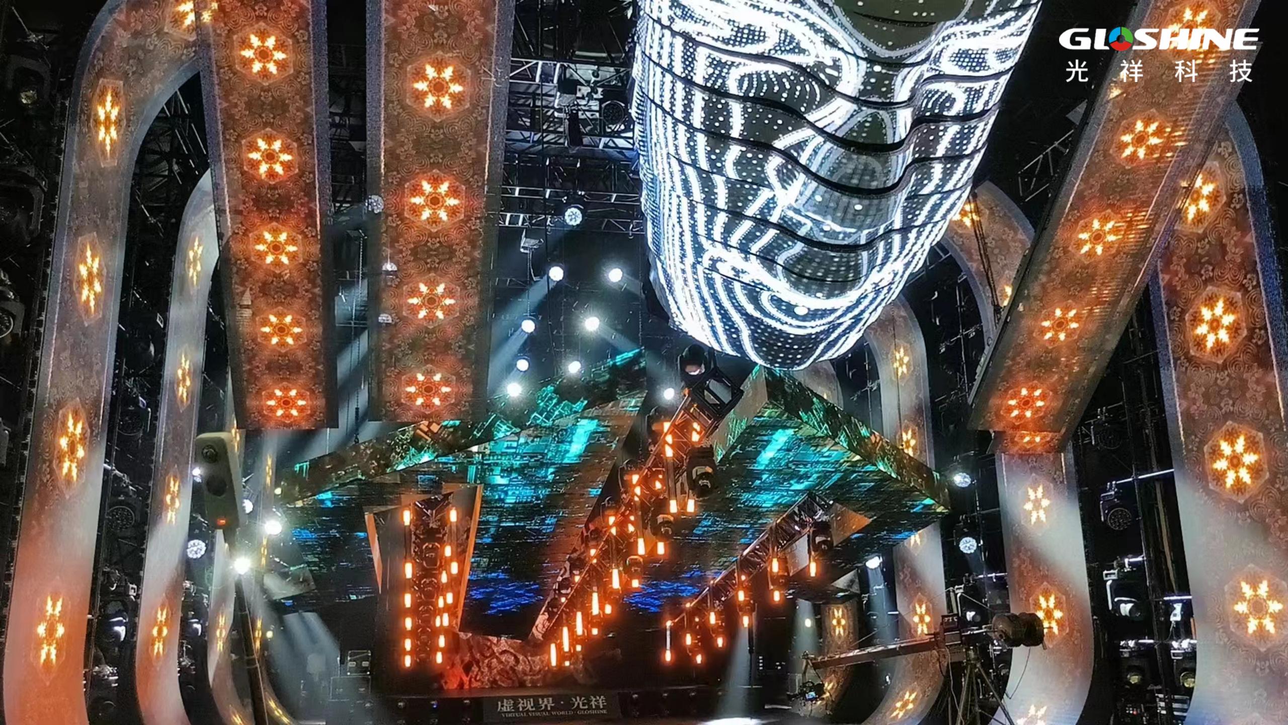 “虛視界·光祥”首創(chuàng)展覽會(huì)現(xiàn)場展演秀,融合聲、光、電等多媒體技術(shù),從主舞臺(tái)XR虛擬攝影棚無限延伸,擴(kuò)展時(shí)間與空間,到CB與TK屏分別塑造的立體羽翼和立體人臉,再到兩側(cè)PL高清屏與CF曲面屏組合的曲線光帶,宛如人類文明穿梭于歷史長河,并以智勇者的氣勢(shì)探索未來,打破自然局限。