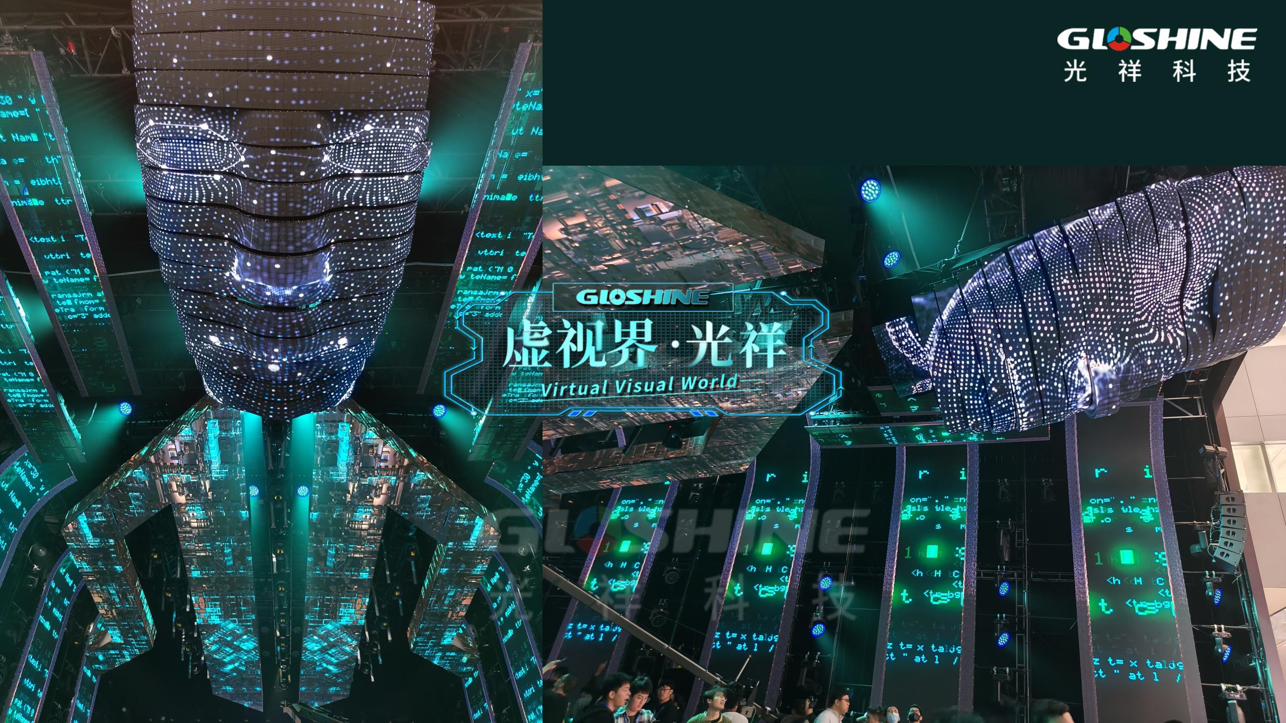 在深圳國展中心10號(hào)館二樓平臺(tái)上,最先映入眼簾的是由光祥CB系列碳纖維高清屏打造的“虛視界·光祥”GLOSHINE裸眼3D視頻。