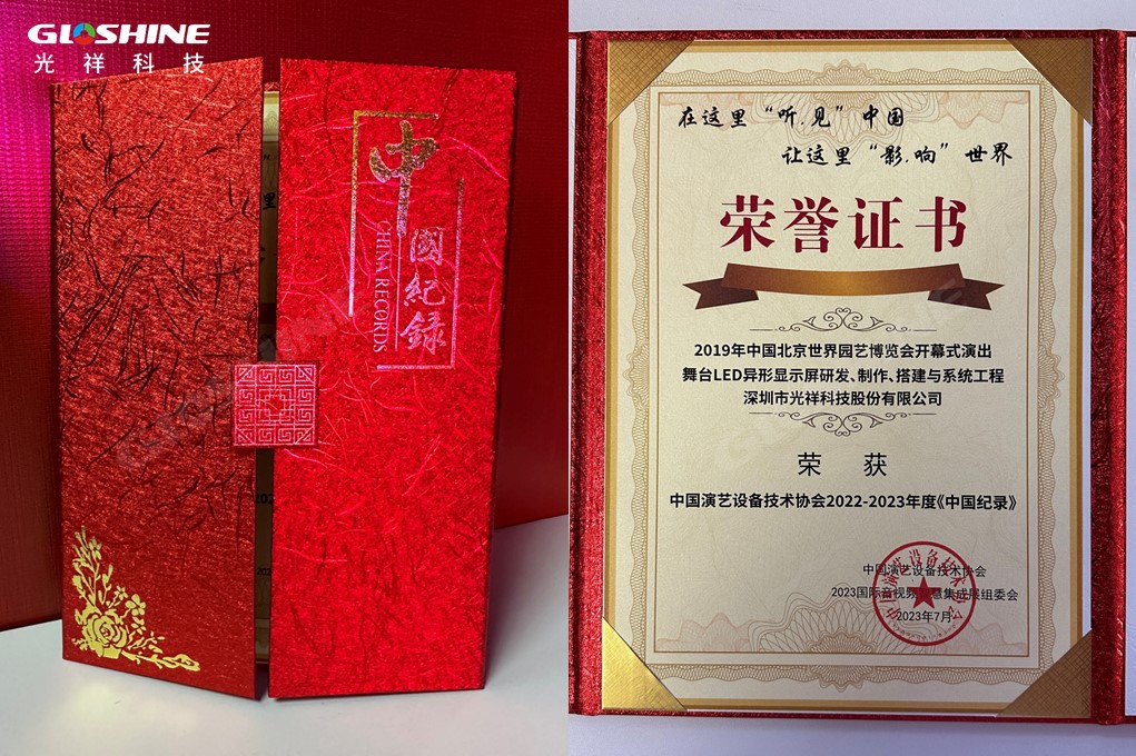 7月17日,中國演藝設(shè)備技術(shù)協(xié)會國際演藝高新技術(shù)論壇在深圳會展中心茶花廳舉行,期間演藝設(shè)備技術(shù)協(xié)會2023年的主推項目《中國紀錄》宣講開幕,會上向各個獲獎項目主體企業(yè)頒發(fā)《中國紀錄》榮譽證書。光祥科技憑借“全國LED顯示屏應(yīng)用最多的舞臺——2019年北京世界園藝博覽會”項目入選《中國紀錄》年度典籍。