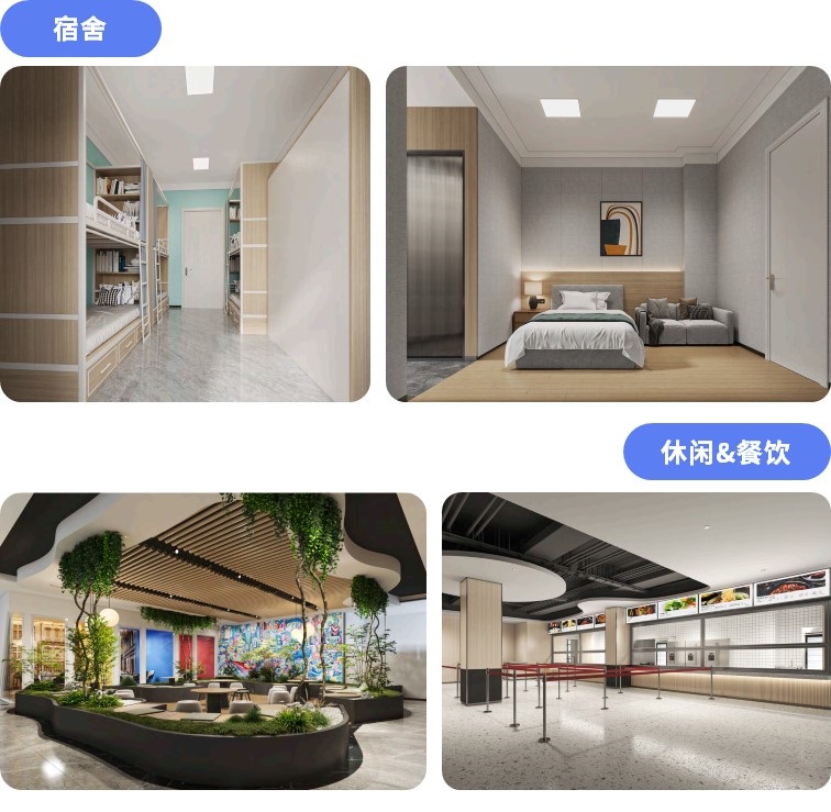 集生產(chǎn)、研發(fā)、辦公、餐飲、休閑、住宿于一體