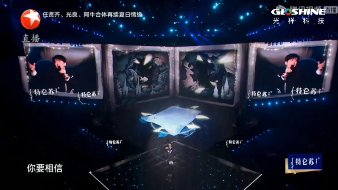 北京衛(wèi)視《踏上新征程·2024跨年之夜》在國家速滑館“冰絲帶”舉行,應(yīng)用1350平方光祥大屏,打造全國首創(chuàng)的“冰絲帶移動(dòng)畫卷”舞美主視覺,利用3D立體機(jī)位雕琢光影,完美呈現(xiàn)音樂化境。