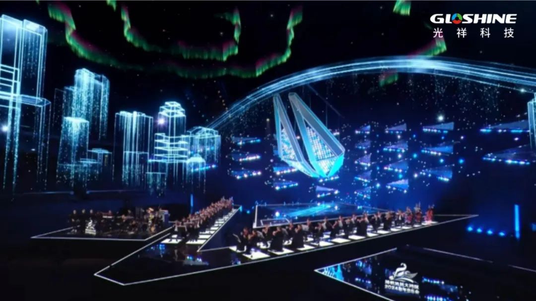 央視跨年晚會(huì)連續(xù)三年來到浙江臺(tái)州,由1000方光祥AR地屏鑄造的巨型舞臺(tái)以“橋”伸展并連接環(huán)湖對岸,通過絕美燈光打造絢麗光影,呈現(xiàn)藝術(shù)與科技完美結(jié)合的視覺盛宴。