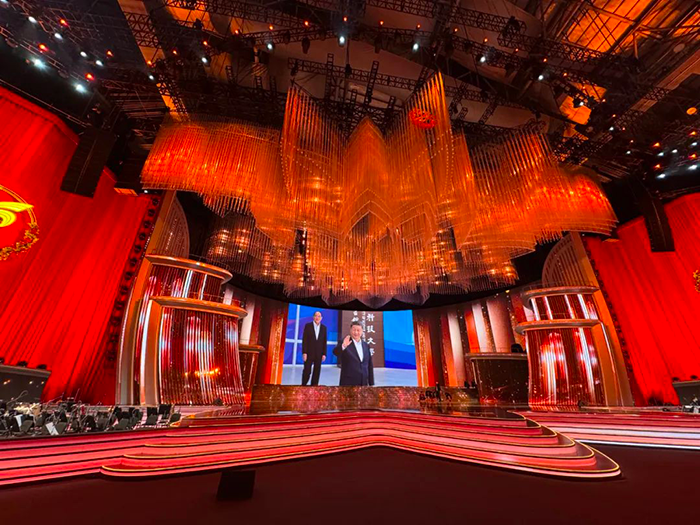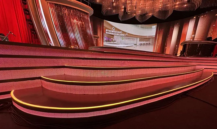 此次文藝晚會(huì)現(xiàn)場(chǎng)采用光祥多系列大屏,涵蓋TK臺(tái)階屏、AR地磚屏、DN高清屏以及VA透明屏等,總面積達(dá)1400平方米,這些大屏具有高穩(wěn)定性、高清晰度、超廣視角等卓越顯示效果,在數(shù)據(jù)備份和精確傳輸方面表現(xiàn)優(yōu)異,其先進(jìn)技術(shù)保障了信息傳輸?shù)牧闶д`、零卡頓,確保了各類資料、影像、數(shù)據(jù)等信息穩(wěn)定流暢展示,為晚會(huì)順利進(jìn)行奠定了堅(jiān)實(shí)基礎(chǔ)。