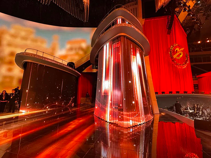 光祥大屏以其卓越顯示效果、多樣化造型,為觀眾呈現(xiàn)出美輪美奐的舞臺(tái)創(chuàng)意和視覺盛宴,與精彩的節(jié)目?jī)?nèi)容相得益彰,讓人們沉浸在對(duì)澳門回歸祖國(guó)25周年的喜悅和對(duì)未來(lái)發(fā)展的美好憧憬之中。