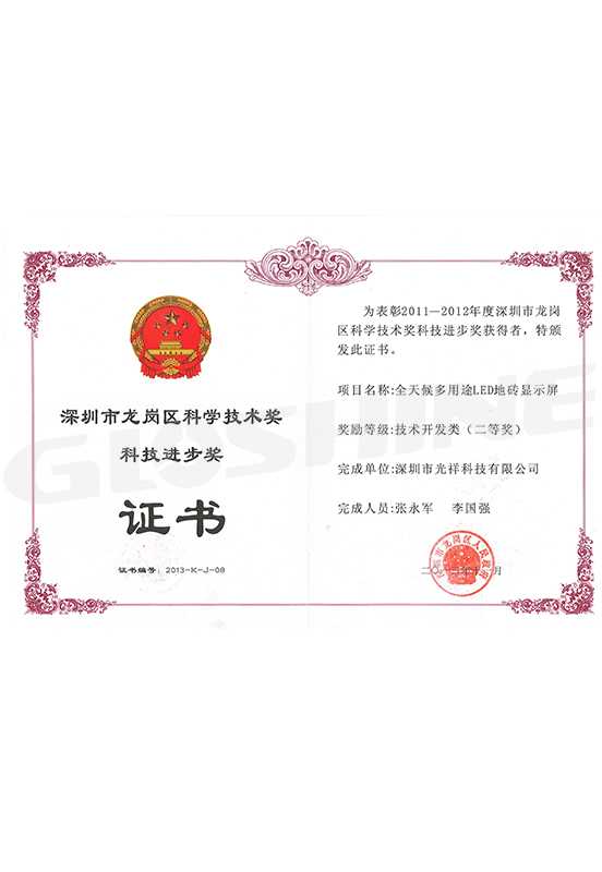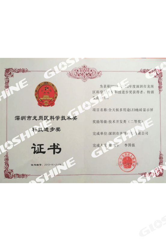 科技進(jìn)步獎證書