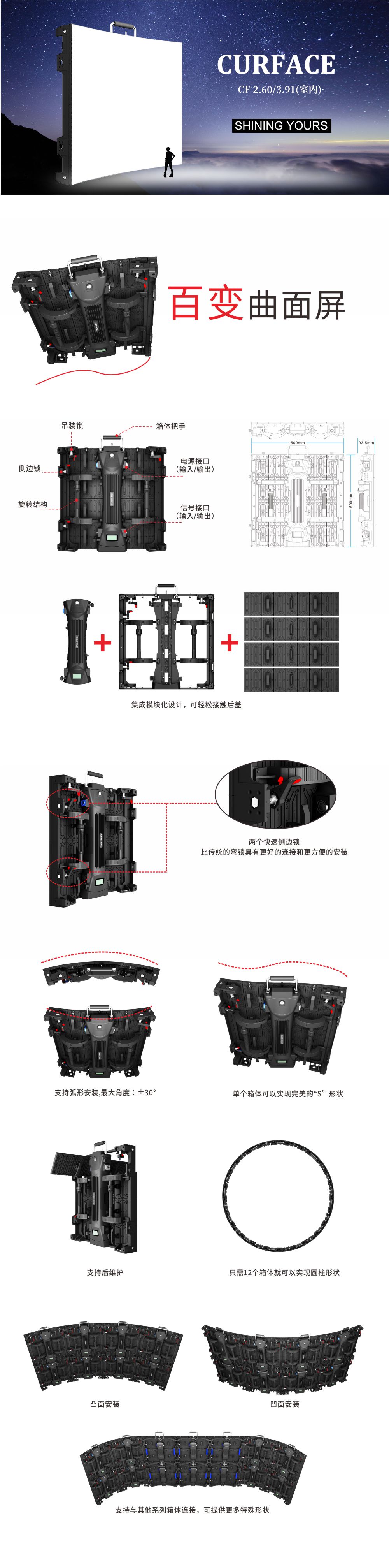 CF系列,集成模塊化設(shè)計,快速側(cè)邊鎖;支持弧形安裝,最大角度:±30°;單個箱體可以實現(xiàn)完美的"S"形狀,支持后維護(hù)。