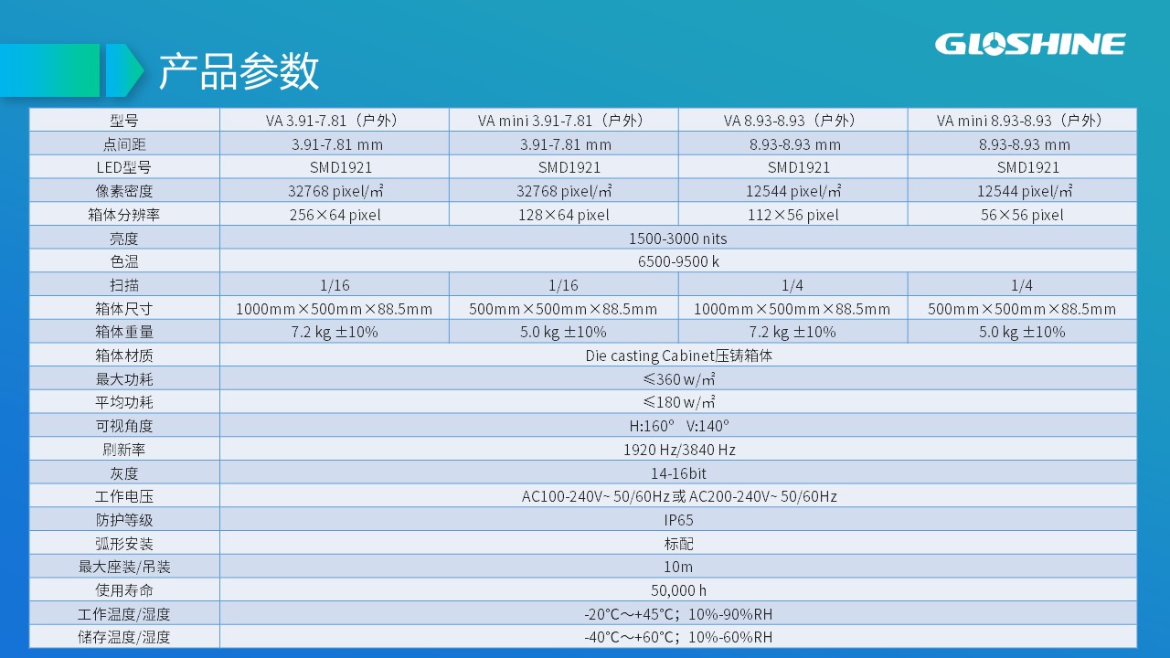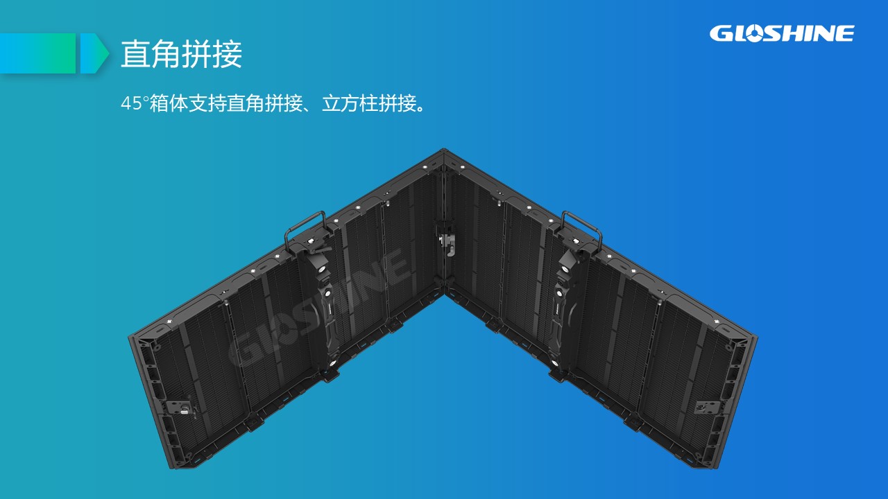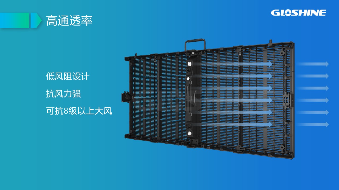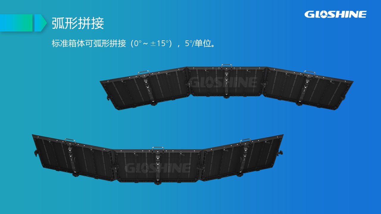 可拼弧度±15°;支持90°拼接;戶外租賃及固裝、吊裝;黑燈高亮,高通透率;超輕超?。豢癸L能力強,可抗8級以上大風;LED納米鍍層防護;面罩設計,解決PCB墨色不均勻問題;后蓋一體化設計。