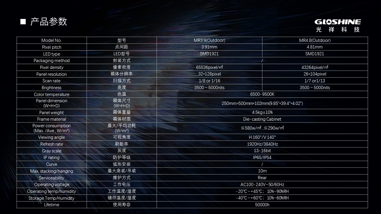 戶外防護(hù)等級(jí):前IP65、后IP54